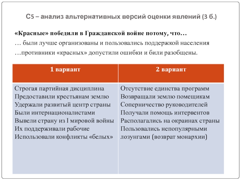 Слайд 12С5 – анализ альтернативных версий оценки явлений (3 б.)