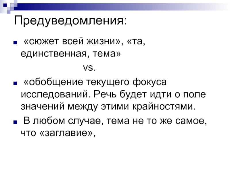 «обобщение текущего фокуса исследований. Речь будет идти о поле значений между этими крайностями.