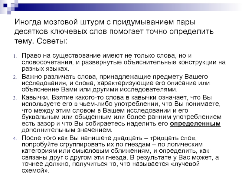 Слайд 33Иногда мозговой штурм с придумыванием пары десятков ключевых слов помогает точно