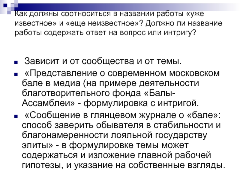Слайд 39Как должны соотноситься в названии работы «уже известное» и «еще неизвестное»?