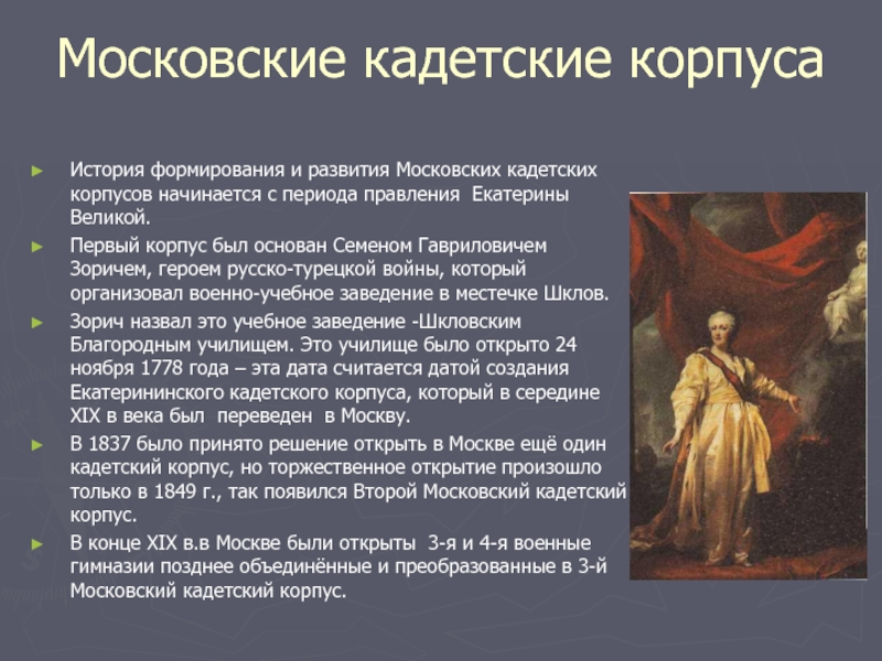 Целью кадетских корпусов было создание надёжного оплота государства в лице профессиональных, образованных и воспитанных граждан, истинно преданных своей стране и готовых служить ей на военном и гражданском поприще.