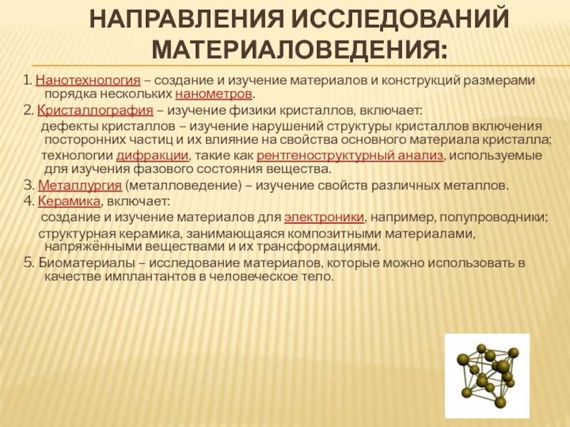Слайд 4НАПРАВЛЕНИЯ ИССЛЕДОВАНИЙ МАТЕРИАЛОВЕДЕНИЯ: