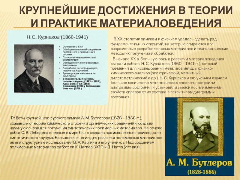 Слайд 7КРУПНЕЙШИЕ ДОСТИЖЕНИЯ В ТЕОРИИ И ПРАКТИКЕ МАТЕРИАЛОВЕДЕНИЯ