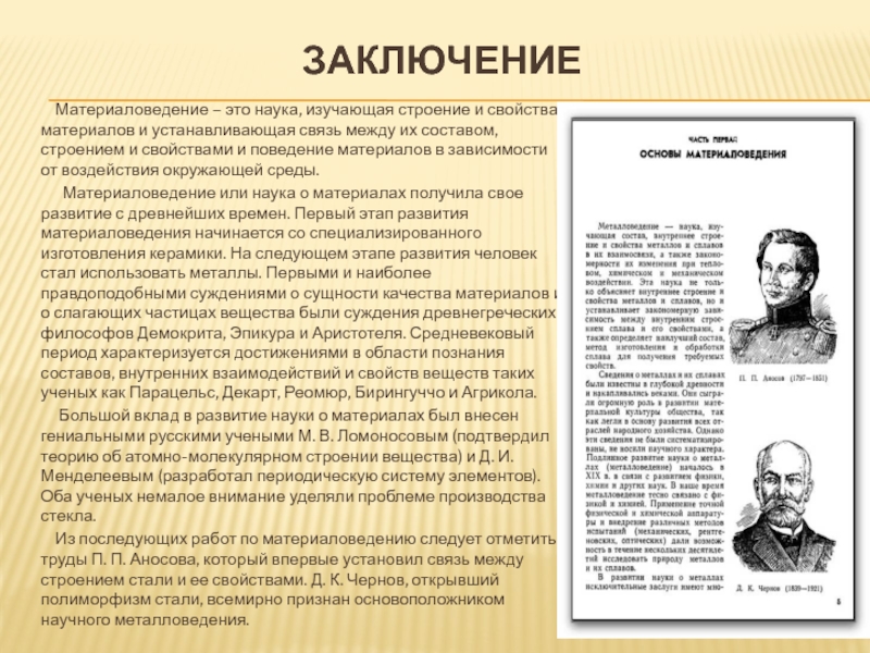 Слайд 6 ЗАРОЖДЕНИЕ МАТЕРИАЛОВЕДЕНИЯ КАК НАУКИ