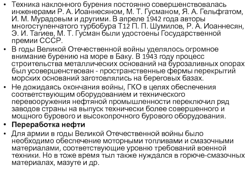 Техника наклонного бурения постоянно совершенствовалась инженерами Р. А. Иоаннесяном, М. Т.