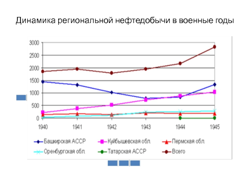 Слайд 13Динамика региональной нефтедобычи в военные годы