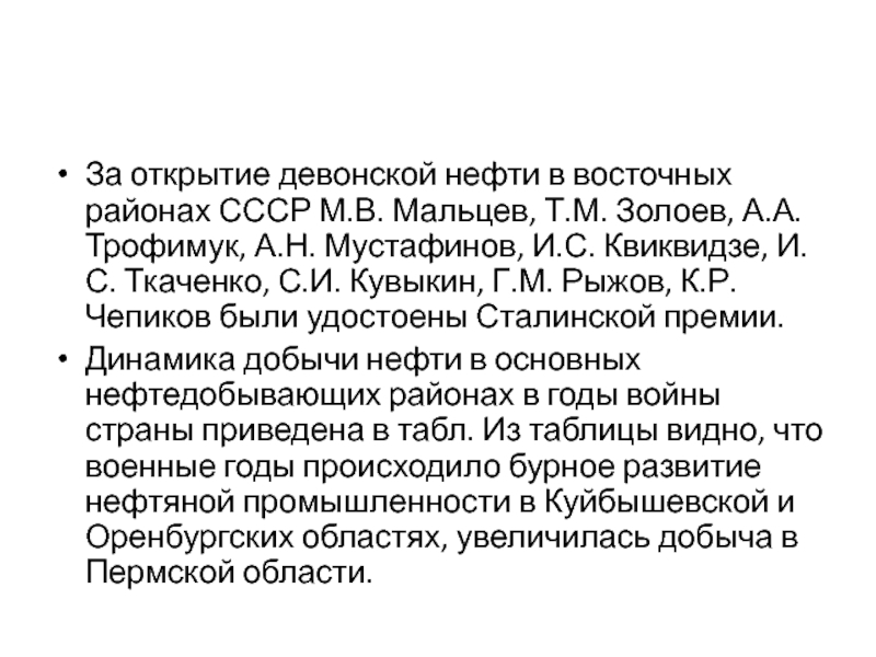 За открытие девонской нефти в восточных районах СССР М.В. Мальцев, Т.М.