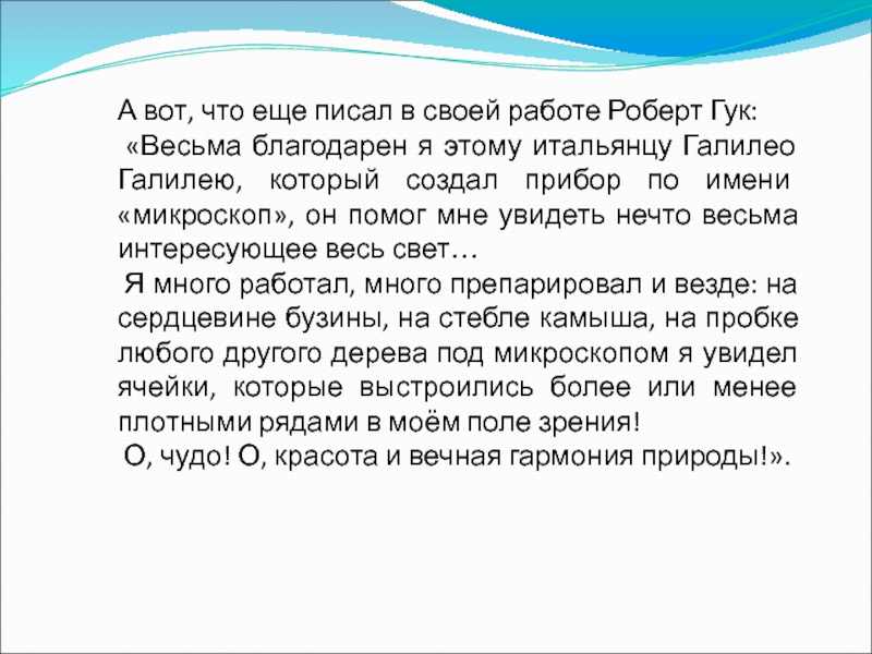 Слайд 5А вот, что еще писал в своей работе Роберт Гук: