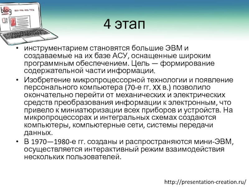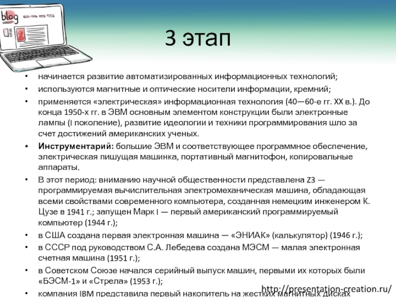 создание первых ЭВМ ( с конца 40-х гг. XX в.).