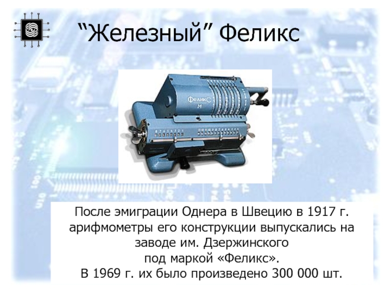 Промышленное производство арифмометров с валиком Лейбница было налажено во Франции Карлом Томасом в 1821 г.