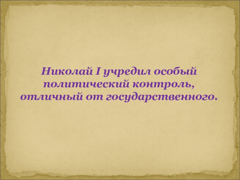 Слайд 10Николай I учредил особый политический контроль, отличный от государственного.
