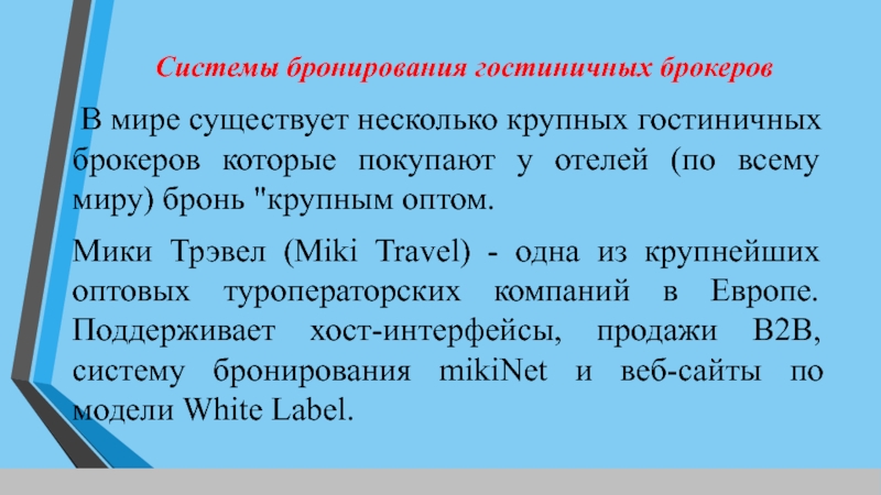 Слайд 18 В мире существует несколько крупных гостиничных брокеров которые покупают у