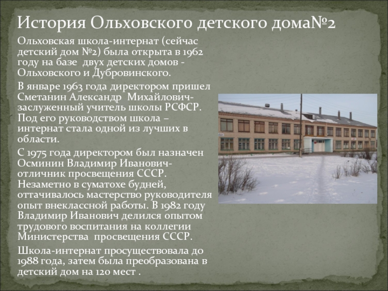 Ольховская школа-интернат (сейчас детский дом №2) была открыта