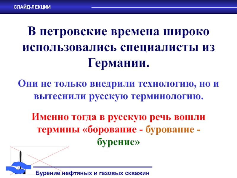 Именно тогда в русскую речь вошли термины «борование - бурование -бурение»