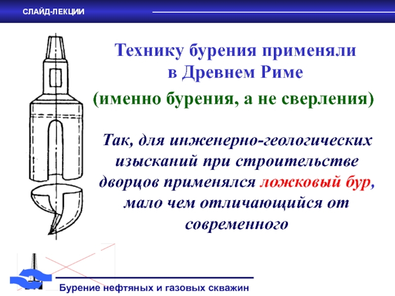 Так, для инженерно-геологических изысканий при строительстве дворцов применялся ложковый бур, мало чем отличающийся от современного