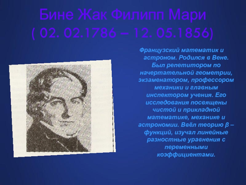 астроном. Родился в Вене. Был репетитором по начертательной геометрии, экзаменатором, профессором механики и главным инспектором учения. Его исследования посвящены чистой и прикладной математике, механике и астрономии. Ввёл теорию β – функций, изучал линейные разностные уравнения с переменными коэффициентами.