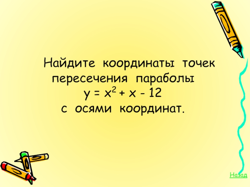 5. Точку пересечения параболы с осью симметрии называют … параболы.