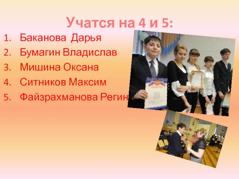 Слайд 3Учатся на 4 и 5: