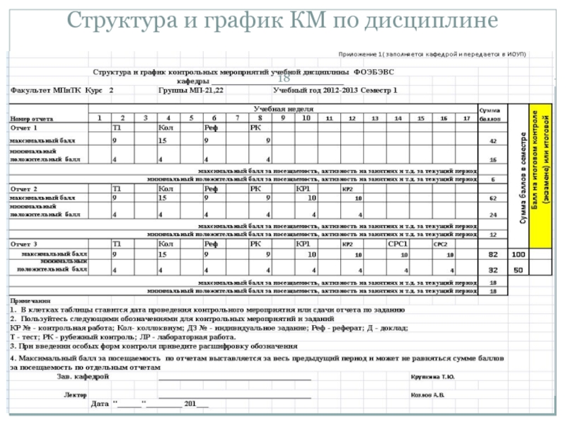 Этапы ТУ: 8-я неделя, 12-я неделя, последний день зачетной недели (также контроль должников на 5-й неделе);