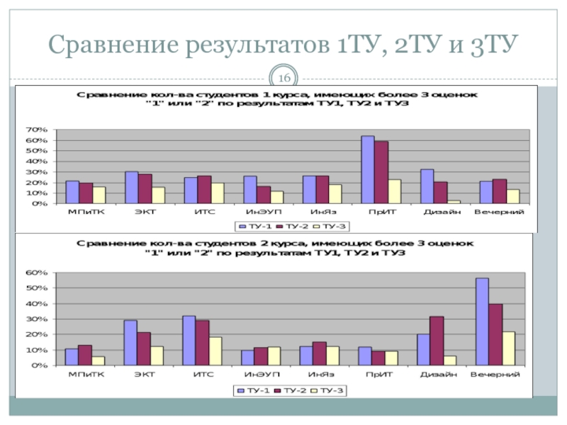 Слайд 16Сравнение результатов 1ТУ, 2ТУ и 3ТУ