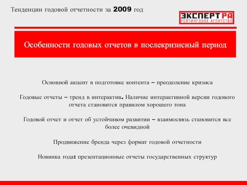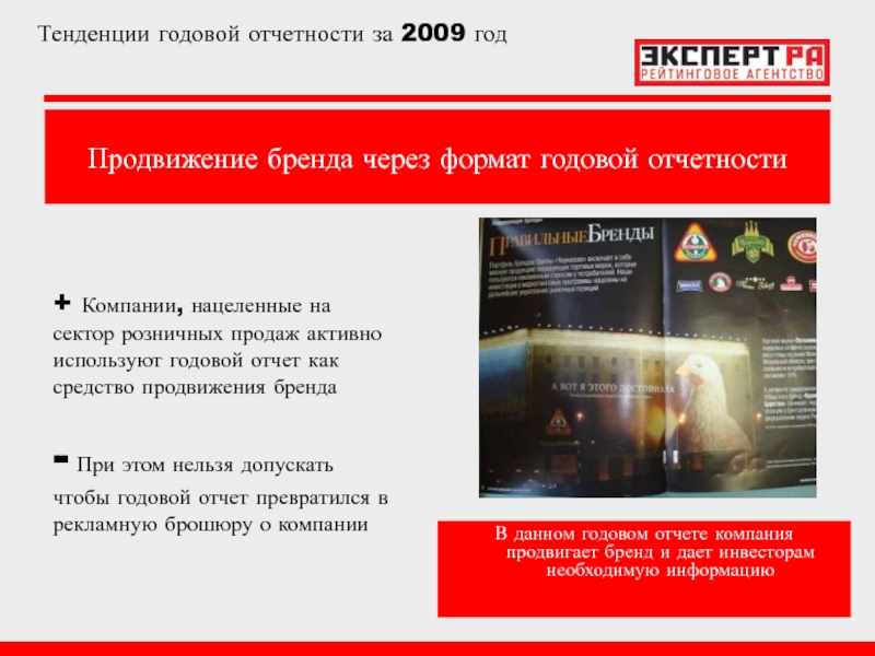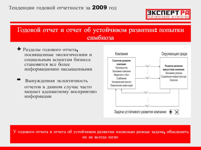 + Разделы годового отчета, посвященные экологическим и социальным аспектам бизнеса становятся все более информационно насыщенными
