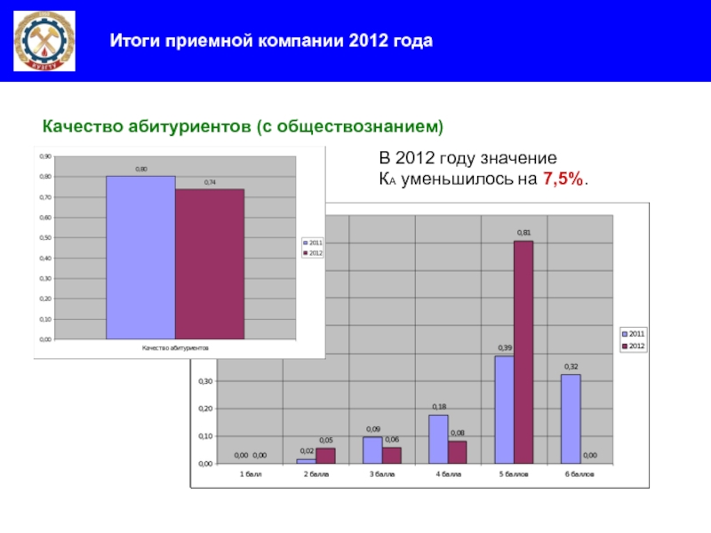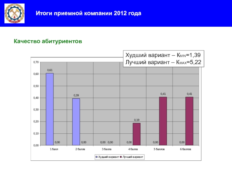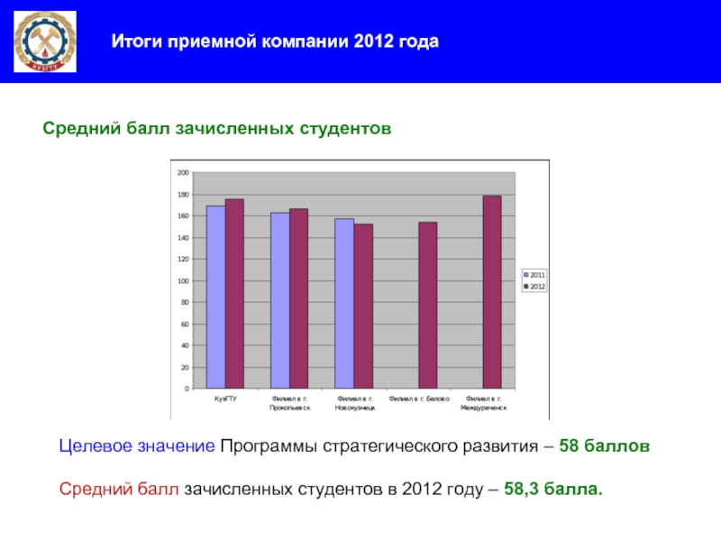 3. Плановые показатели Программы стратегического развития и Цели КузГТУ в области качества на 2012 год с точки зрения привлечения качественных абитуриентов выполнены.