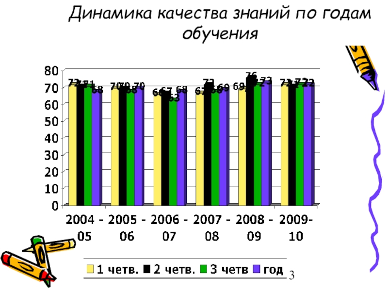 Слайд 3Динамика качества знаний по годам обучения