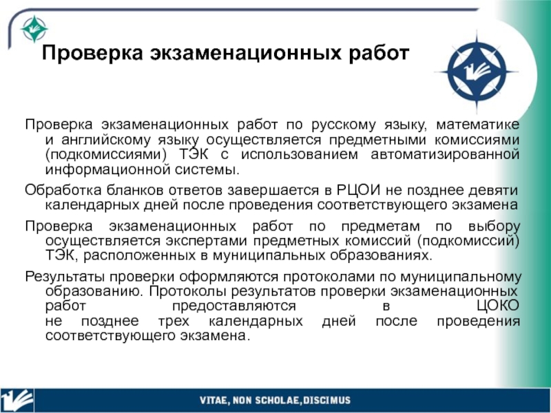 Проверка экзаменационных работ по русскому языку, математике