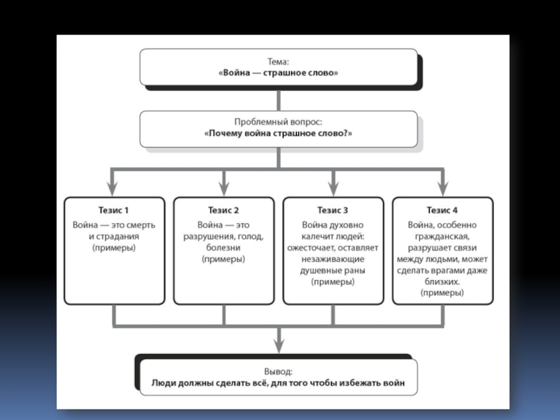 В заключение сочинения я хочу сказать, что главный вопрос, который ставит перед человечеством война, можно сформулировать так: как не допустить новых войн, новых человеческих страданий, как уберечь наш хрупкий мир от вселенской катастрофы, способной уничтожить всё живое на земле? И эту проблему предстоит решать нам — людям XXI века.