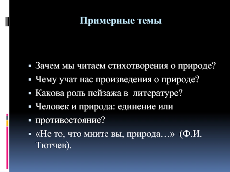 «Не то, что мните вы, природа…» (Ф.И.Тютчев).