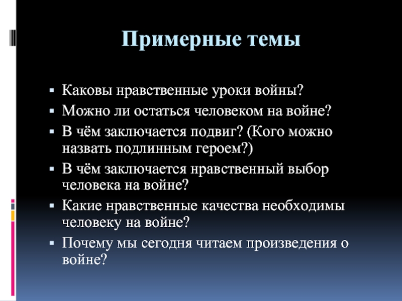 Темы позволят выпускнику выбирать литературный материал, на который он будет опираться в своих рассуждениях.