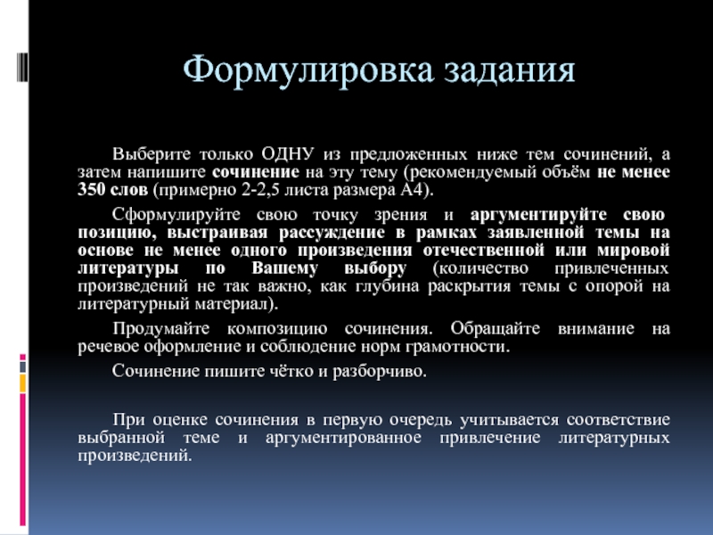 Выберите только ОДНУ из предложенных ниже тем сочинений, а