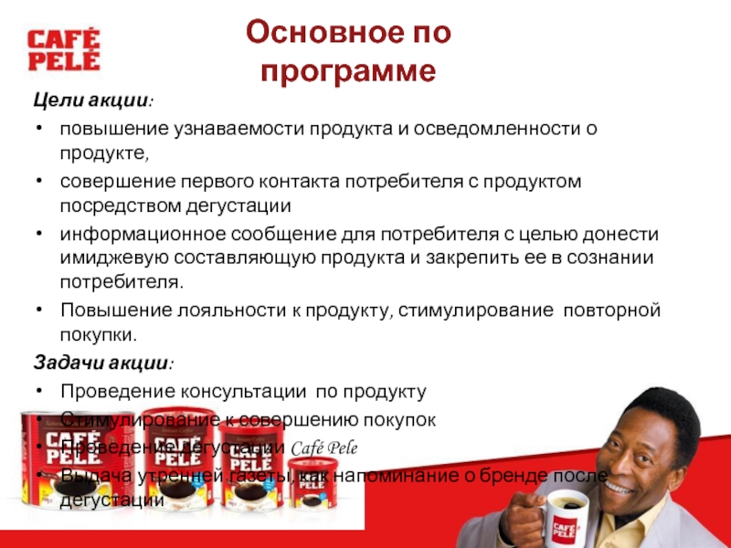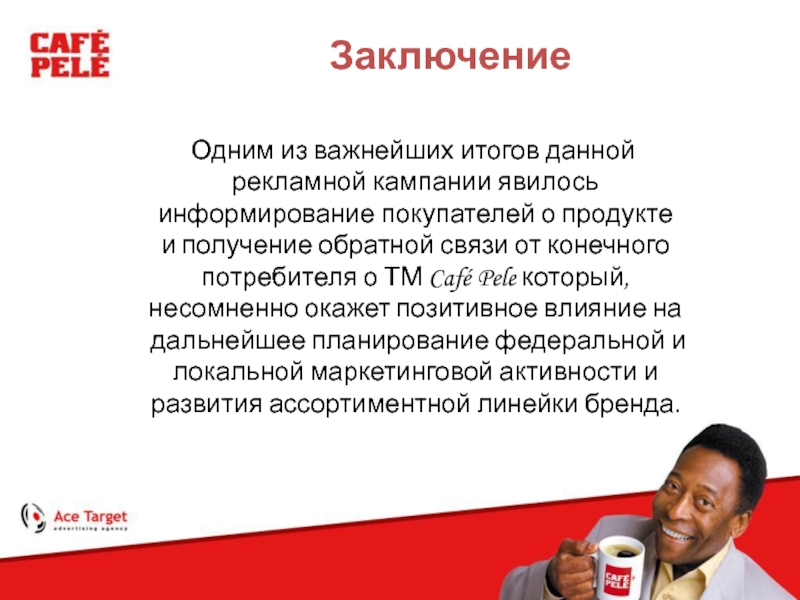 информирование покупателей о продукте и получение обратной связи от конечного потребителя о ТМ Café Pele который, несомненно окажет позитивное влияние на дальнейшее планирование федеральной и локальной маркетинговой активности и развития ассортиментной линейки бренда.
