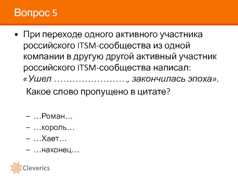 Таким образом, в большинстве случаев во главе ITSM-сообщества стоит…