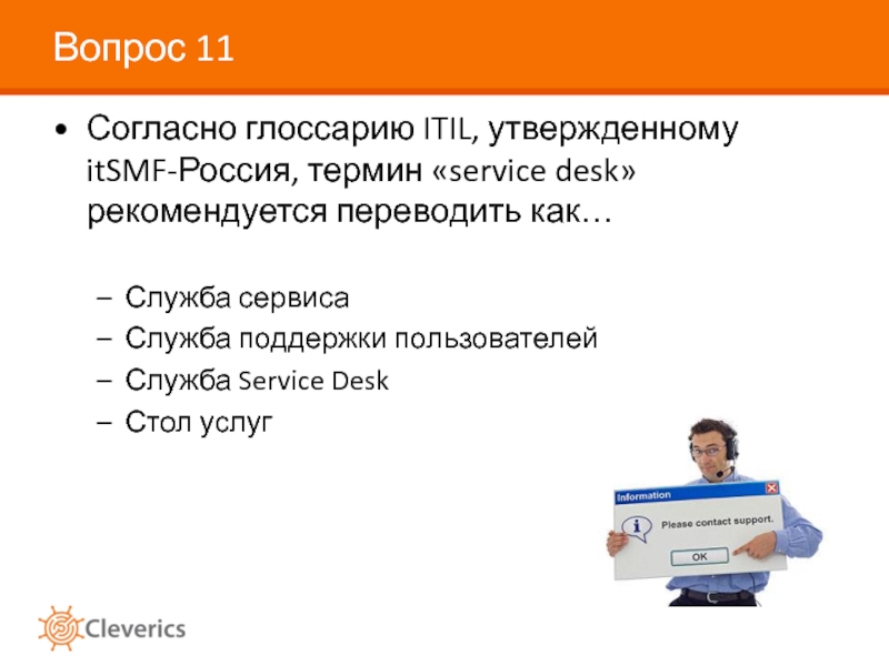 Согласно глоссарию ITIL, утвержденному itSMF-Россия, термин «service desk» рекомендуется переводить