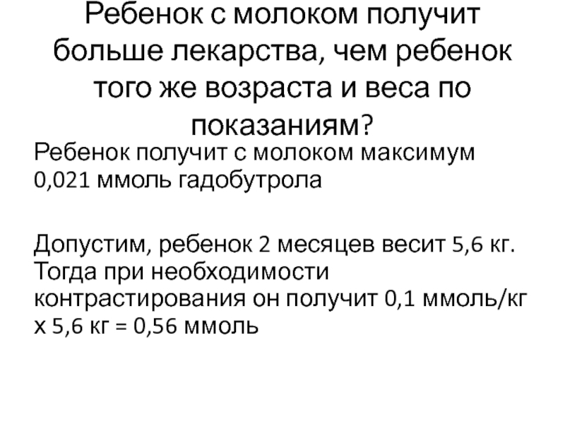 Ребенок получит с молоком 0,021 ммоль гадобутрола