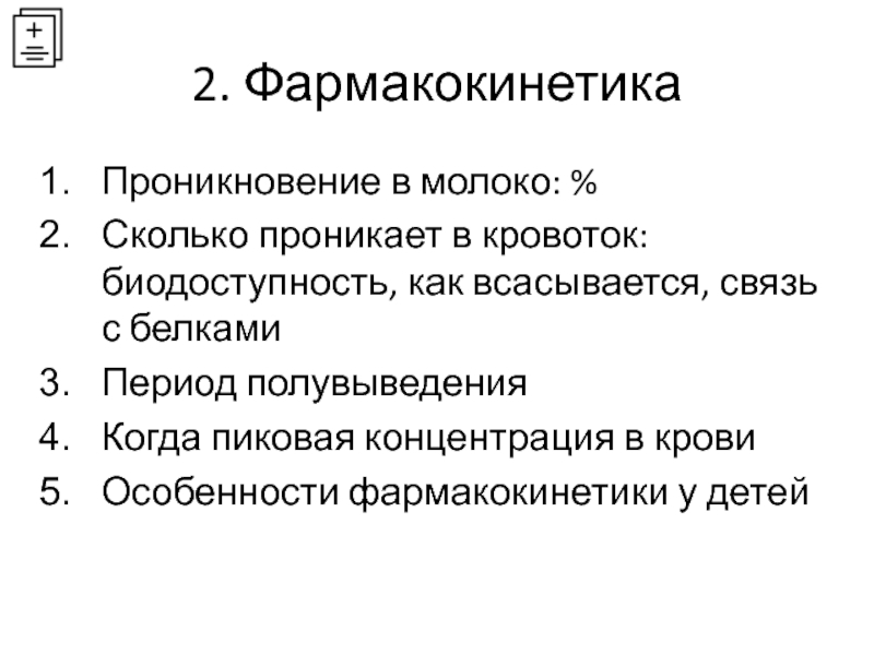 Быстро выводится – каждые 2 ч концентрация падает в 2 раза