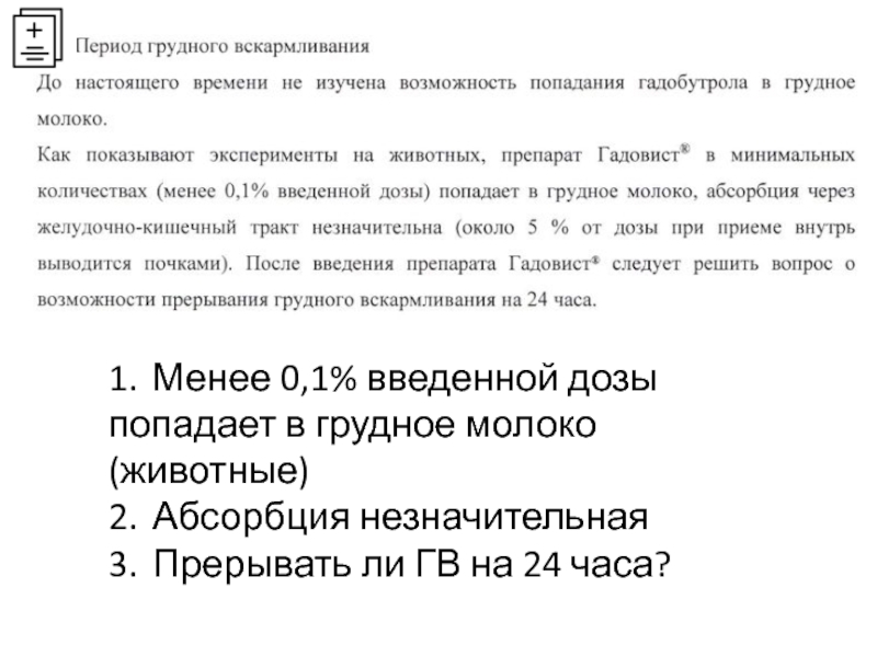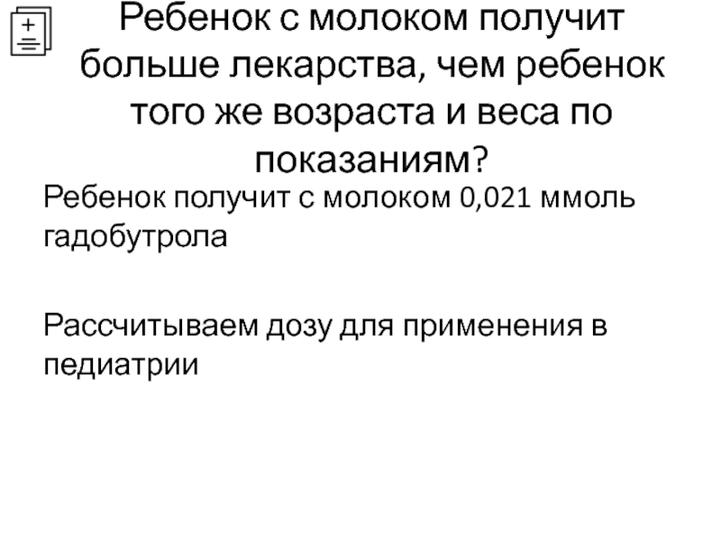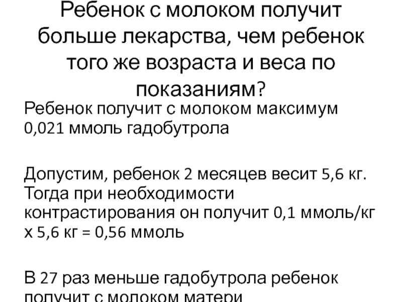 Ребенок получит с молоком максимум 0,021 ммоль гадобутрола