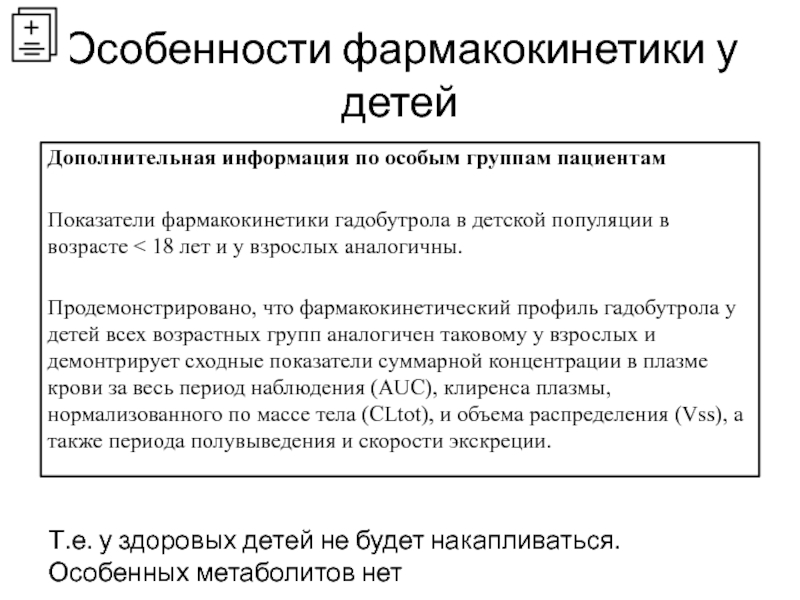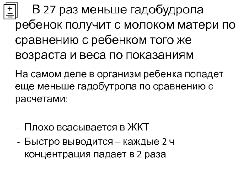 На самом деле в организм ребенка попадет еще меньше гадобутрола по сравнению с расчетами:
