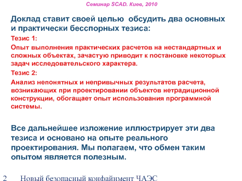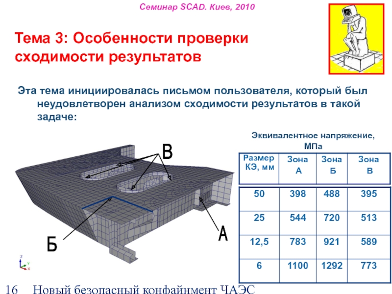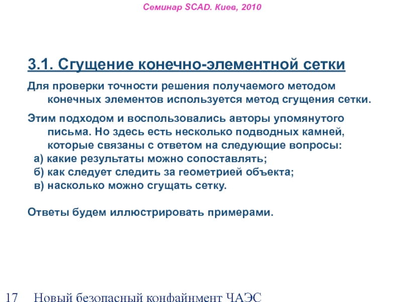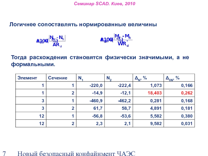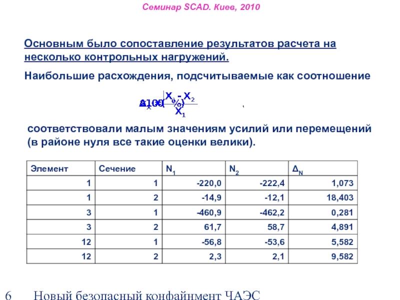 Основным было сопоставление результатов расчета на несколько контрольных нагружений.