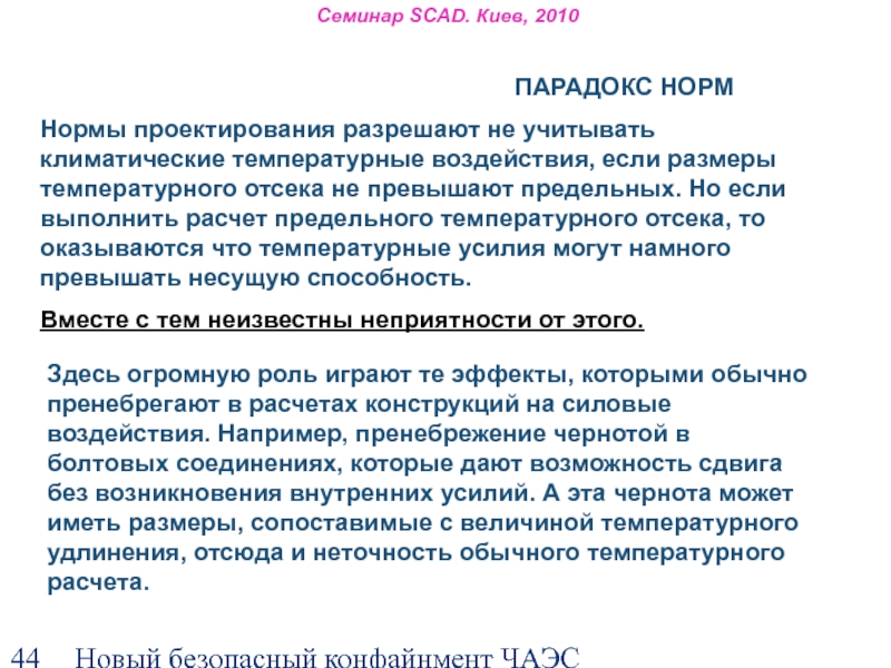 Здесь огромную роль играют те эффекты, которыми обычно пренебрегают в расчетах конструкций на силовые воздействия. Например, пренебрежение чернотой в болтовых соединениях, которые дают возможность сдвига без возникновения внутренних усилий. А эта чернота может иметь размеры, сопоставимые с величиной температурного удлинения, отсюда и неточность обычного температурного расчета.