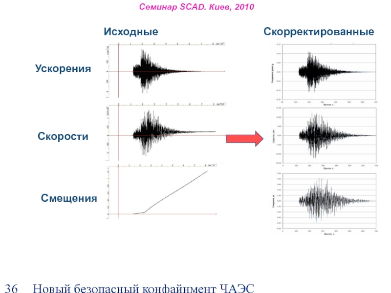 Трехкомпонентные акселерограммы расчетных землетрясений были представлены Институтом геофизики им. Субботина НАН Украины. Их проверка выполнялась Редактором акселерограмм из SCAD Office. Понадобилась корректировка линии отсчета и частотная фильтрация.