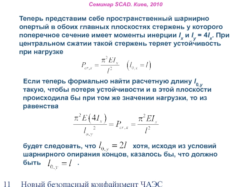 Если теперь формально найти расчетную длину l0,y такую, чтобы потеря устойчивости и в этой плоскости происходила бы при том же значении нагрузки, то из равенства