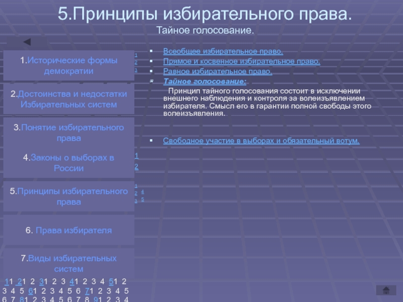 Принцип тайного голосования состоит в исключении внешнего наблюдения и контроля за волеизъявлением избирателя. Смысл его в гарантии полной свободы этого волеизъявления.