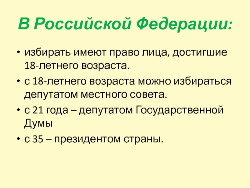 допускает, что гражданин может быть выбран депутатом или главой государства.