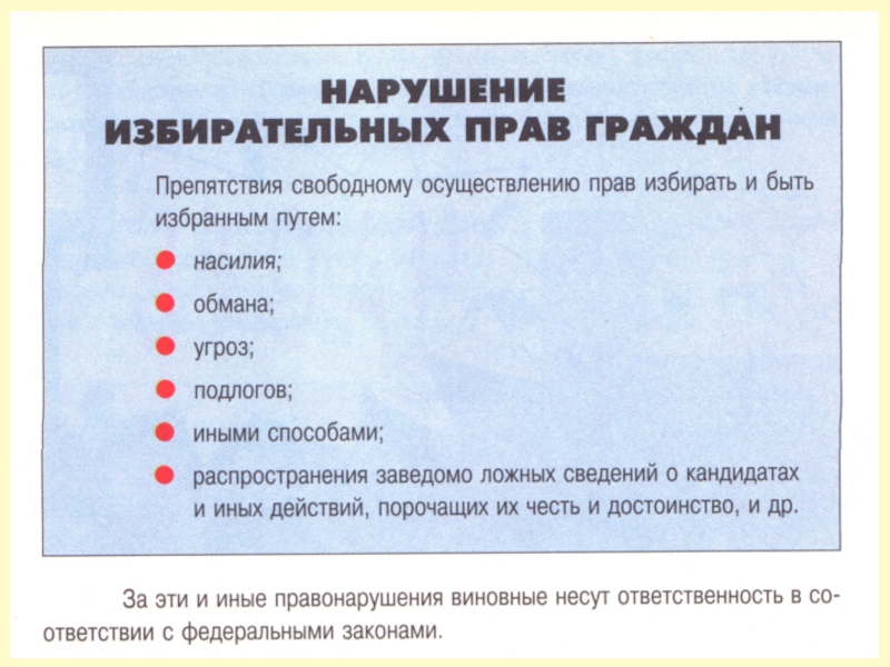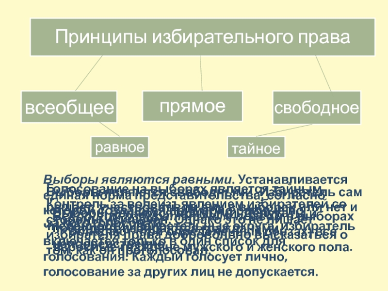 Выборы являются свободными. Избиратель сам решает, участвовать ли ему в выборах или нет и за кого голосовать.