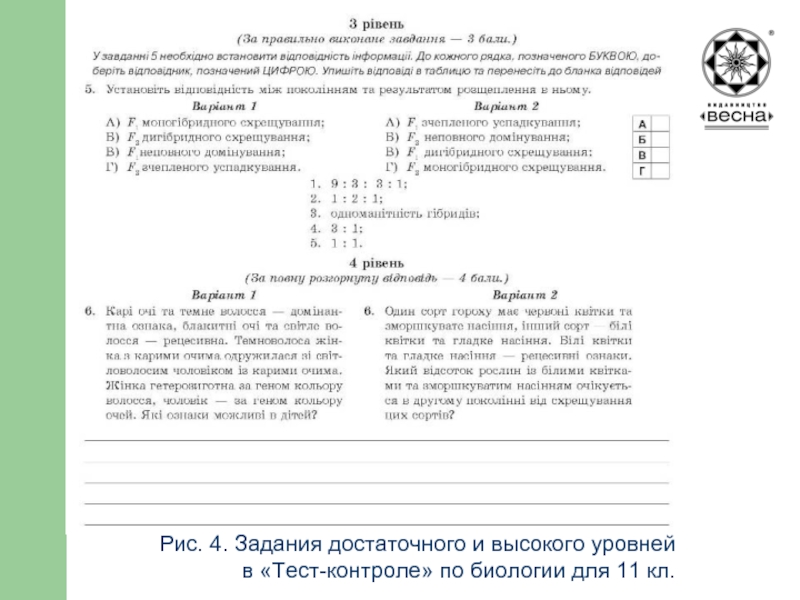 оценивания, разработанными Украинским центром оценивания качества образования, и действующими учебными программами по биологии, а также согласно техническим характеристикам ВНО 2010 года (информация размещена на сайте УЦОКО: www.testportal.com.ua).