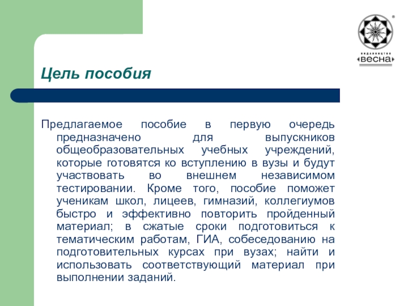 Главная цель создания пособия — помочь ученикам подготовиться к государственной