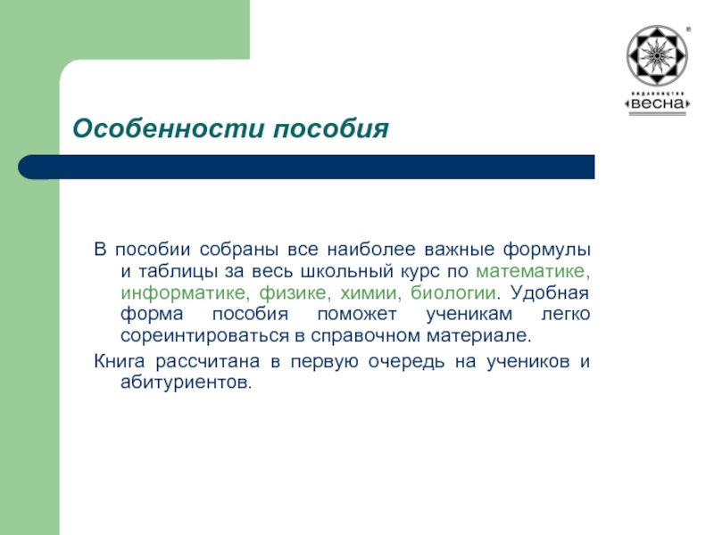 Слайд 9Особенности пособия