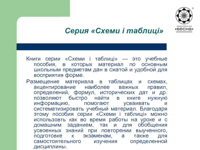 Книги серии «Схеми і таблиці» — это
